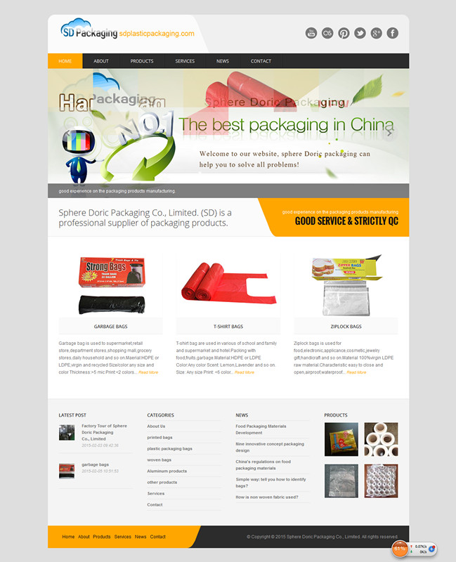 潍坊时代网络技术有限公司受Sphere Doric Packaging Co., Limited. 的委托,为其打造全站网站建设,提供页面设计,图片处理及相关网络设计维护服务,同时完善的后期维护服务与其经营紧密配合。